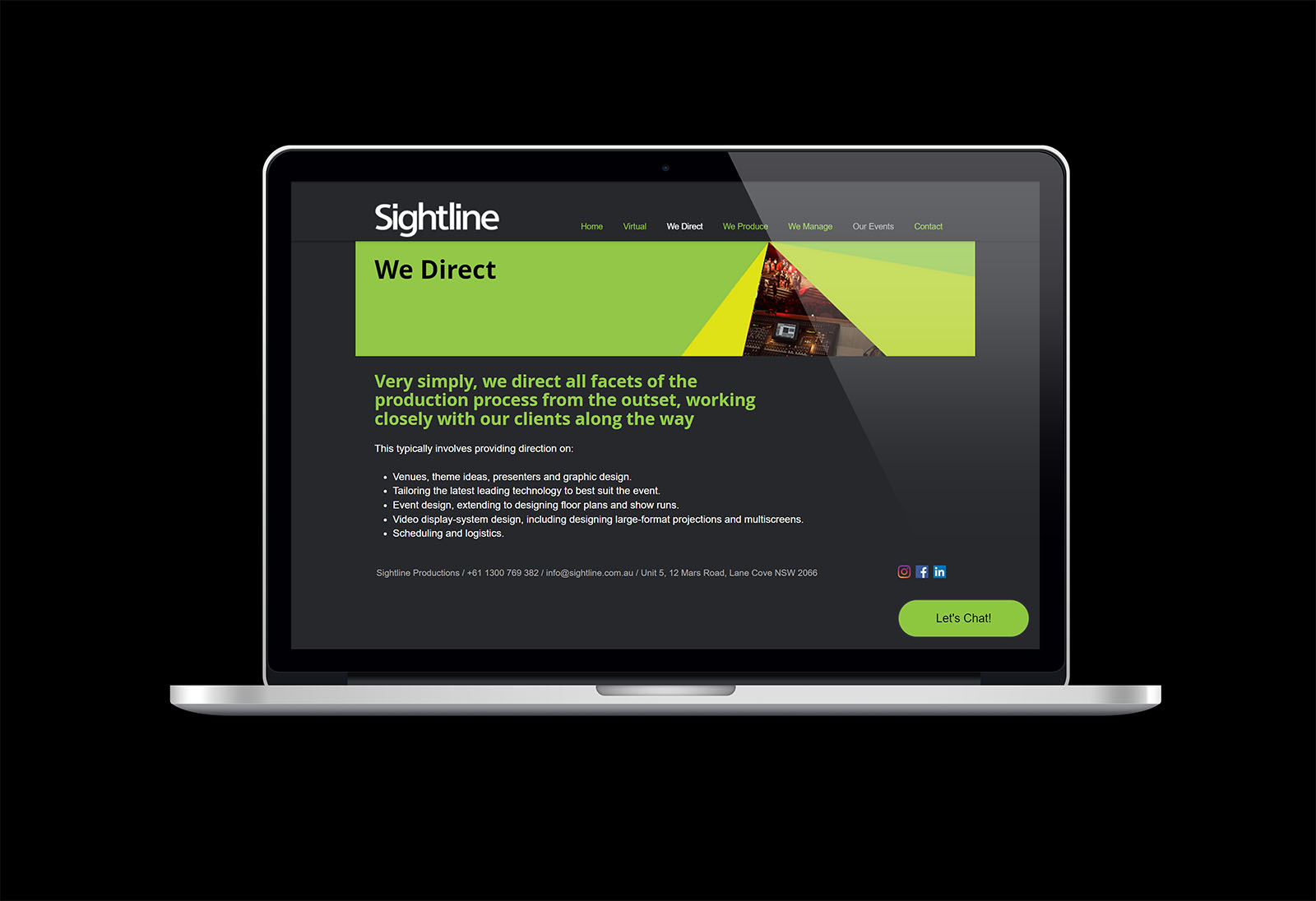 The business required a distinctive brand language capable of bridging corporate events, commercial AV, and live music environments. Sightline also needed to showcase it's latest work in an impressive and easy way as well inform others of the distinct divisions of services Sightline provides it's clients.